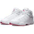 The Jordan 6-Rings incorporates key features from each shoe that MJ wore while stacking up the Championship rings for Chicago. Celebrate the history of Jordan with this hybrid design that takes its cues from six legendary Jordan shoe styles. Full-grain leather, synthetic leather and engineered mesh upper, with details like the lacelock and heel loop from the Jordan VI, a huarache-style inner sock from the Jordan VII and a fuzzy tongue logo and adjustable strap from the Jordan VIII. Midsole, a full-length Phylon unit with Zoom Air in the heel and forefoot, was inspired by the Jordan XIII. Entire upper silhouette gets its design from the Jordan XI while the "TWO3" script on the tongue and metal lace loops on top are taken from the Jordan XII. Outsole is a combination of solid and clear rubber, which created performance traction with superior style. Mid.